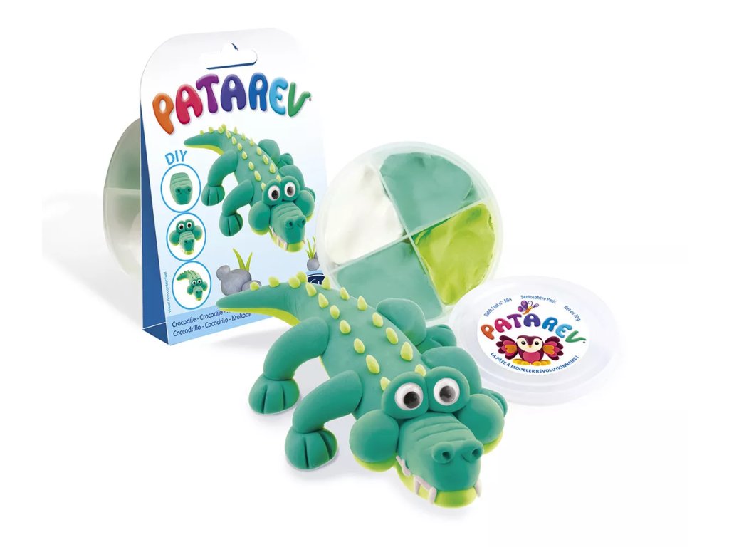 Kreativni set francuske marke Sentosphere sadrži detaljne upute korak po korak za izradu krokodila od modelina Patarev.