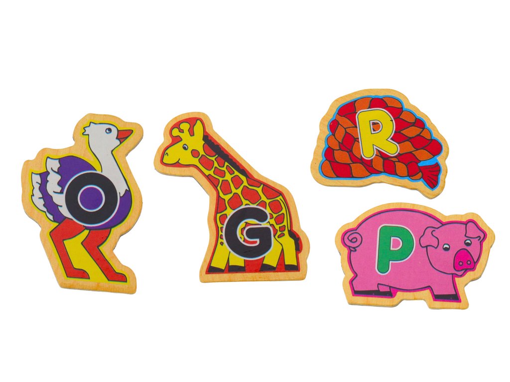 Set drvenih magneta, slova, slike, životinje, predmeti, 26 komada