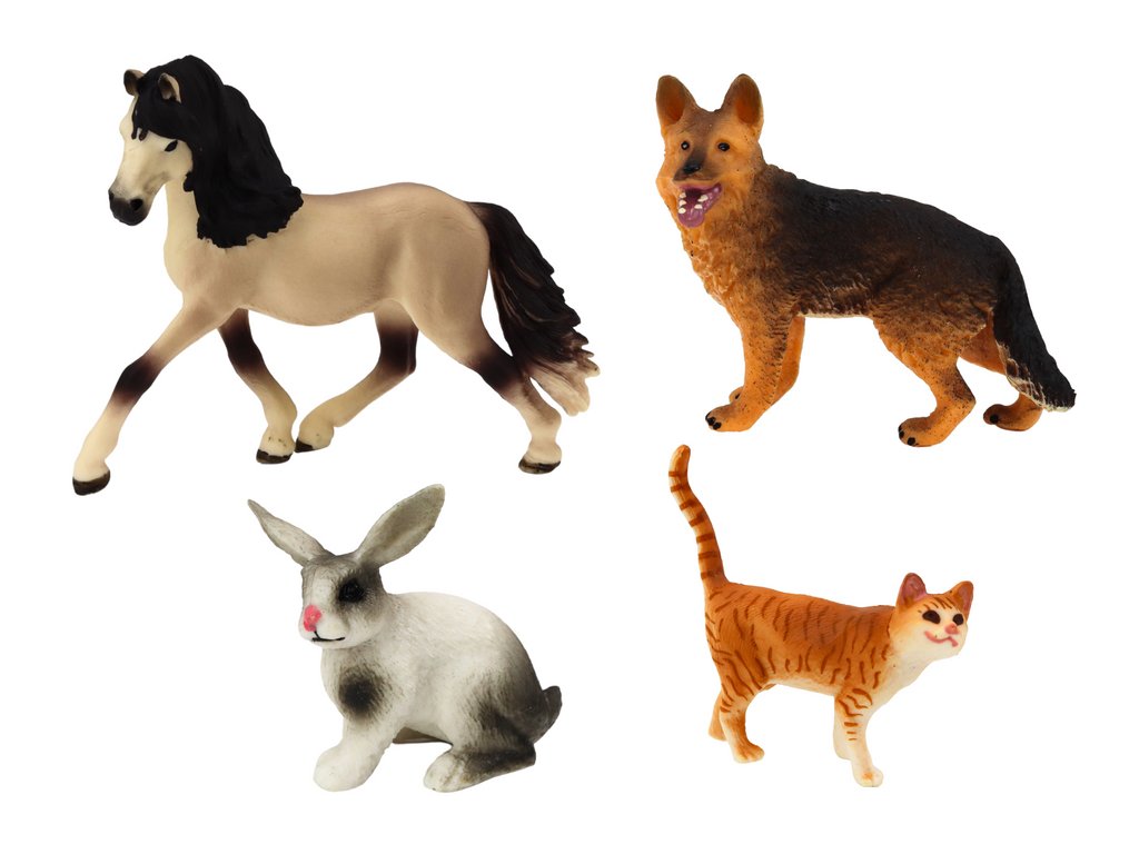 Set figurica je izvrsna igračka koja prenosi djecu u svijet njihovih omiljenih ljubimaca. Set sadrži 4 realistično izrađene figurice životinja, uključujući konja, zeca, psa i mačku. Svaka od njih pažljivo je izrađena kako bi vjerno uhvatila karakteristične crte i izgled ovih popularnih životinja.