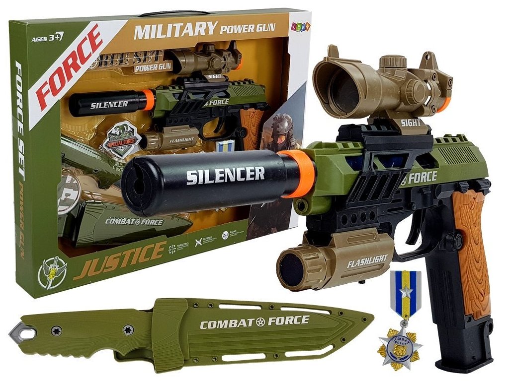 Vojne igračke, obično vojnici i bojišta, ili airsoft pištolji, često su inspirirane akcijskim filmovima. Ovo vojno oduševljenje nalazi sve više obožavatelja i među našim najmlađima. Stoga nastaje sve više igračaka koje zadivljuju svojom funkcionalnošću i raznolikošću. Naš set će oduševiti svakog ljubitelja vojne opreme i bit će savršen dodatak za karnevalski kostim.
