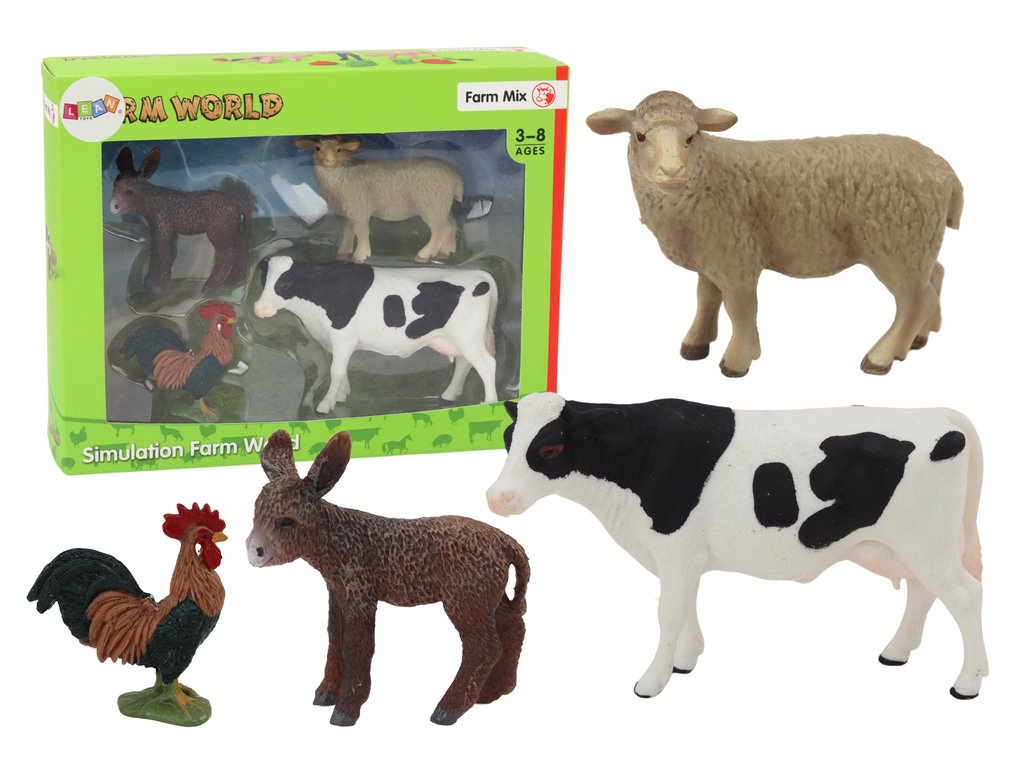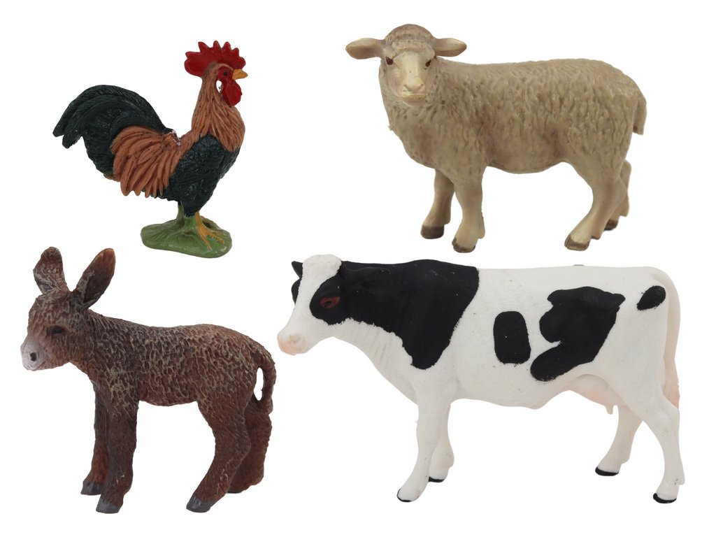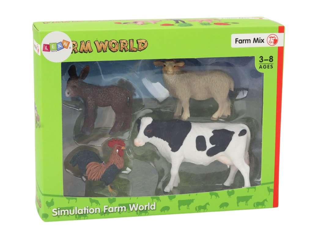 Figurice životinja nešto su što djeca svih uzrasta obožavaju. Nude neograničene mogućnosti igre, što vrlo pozitivno utječe na njihovu maštu. Set omogućuje organizaciju veselih igara koje će trajati dugo. Set se sastoji od 4 domaće i farme životinje koje se najčešće susreću na selu. Figurice izrađene od debelog gumenog materijala potiču dječju maštovitost i kreativnost.