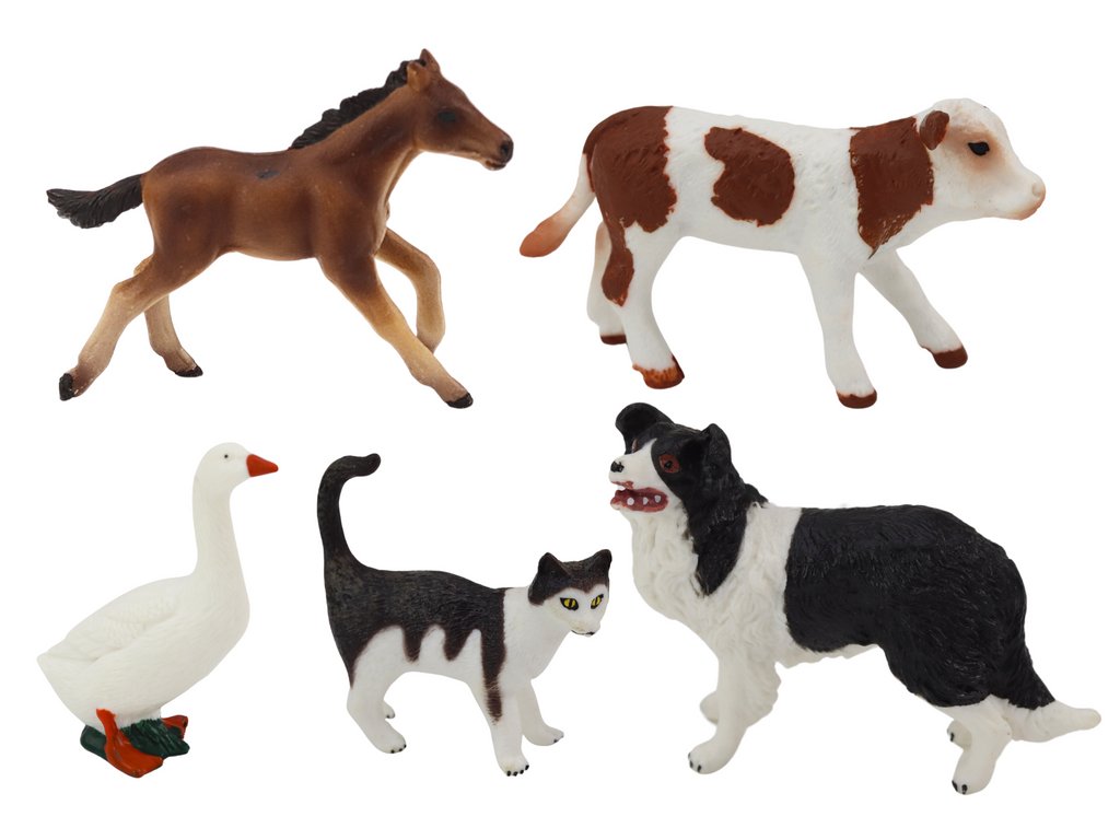 Figurice životinja su neizostavan dodatak svakom dječjem svijetu igre — vole ih mališani i oni veći. Nude beskrajne mogućnosti igre, što vrlo pozitivno utječe na dječju maštu. Ovaj set omogućava veselu igru koja zasigurno neće brzo završiti. Sastoji se od 5 domaćih i životinja s farme, koje najčešće srećemo na selu. Figurice izrađene od debele gumene tvari razvijaju maštu i kreativnost djeteta.