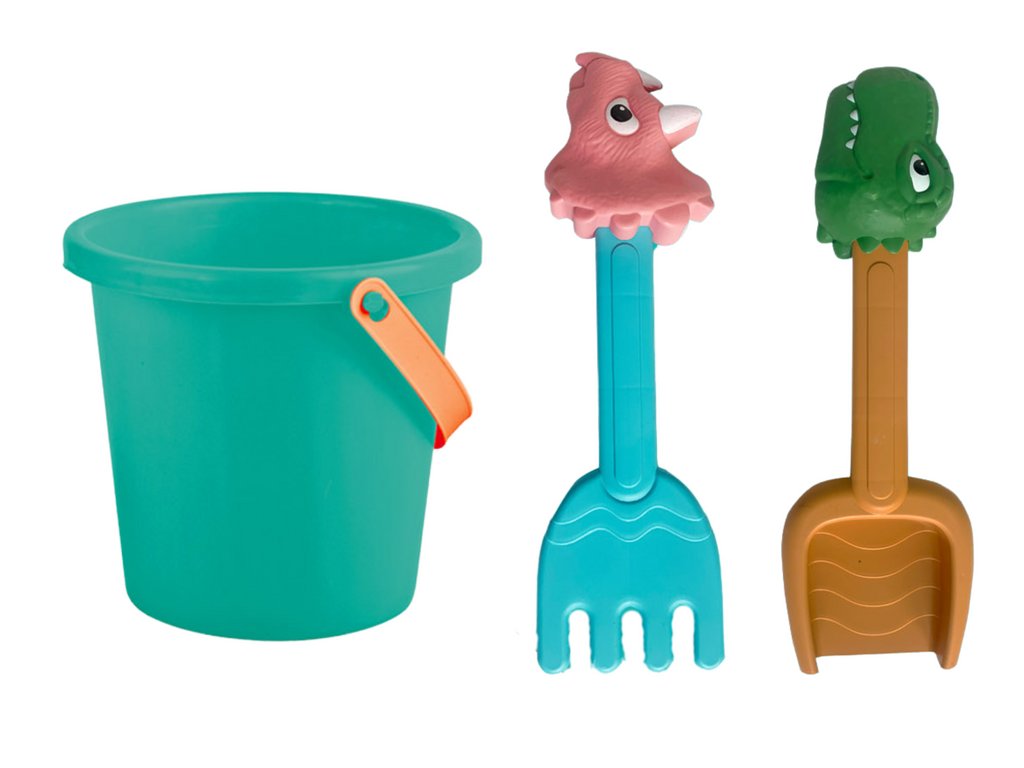U setu je i kantica, lopatica i grabljice, također s motivom dinosaura, što čini svaku igru uzbudljivim putovanjem u prošlost. Uz to, limenka i kalupi za pijesak omogućavaju stvaranje različitih pješčanih građevina i figura.