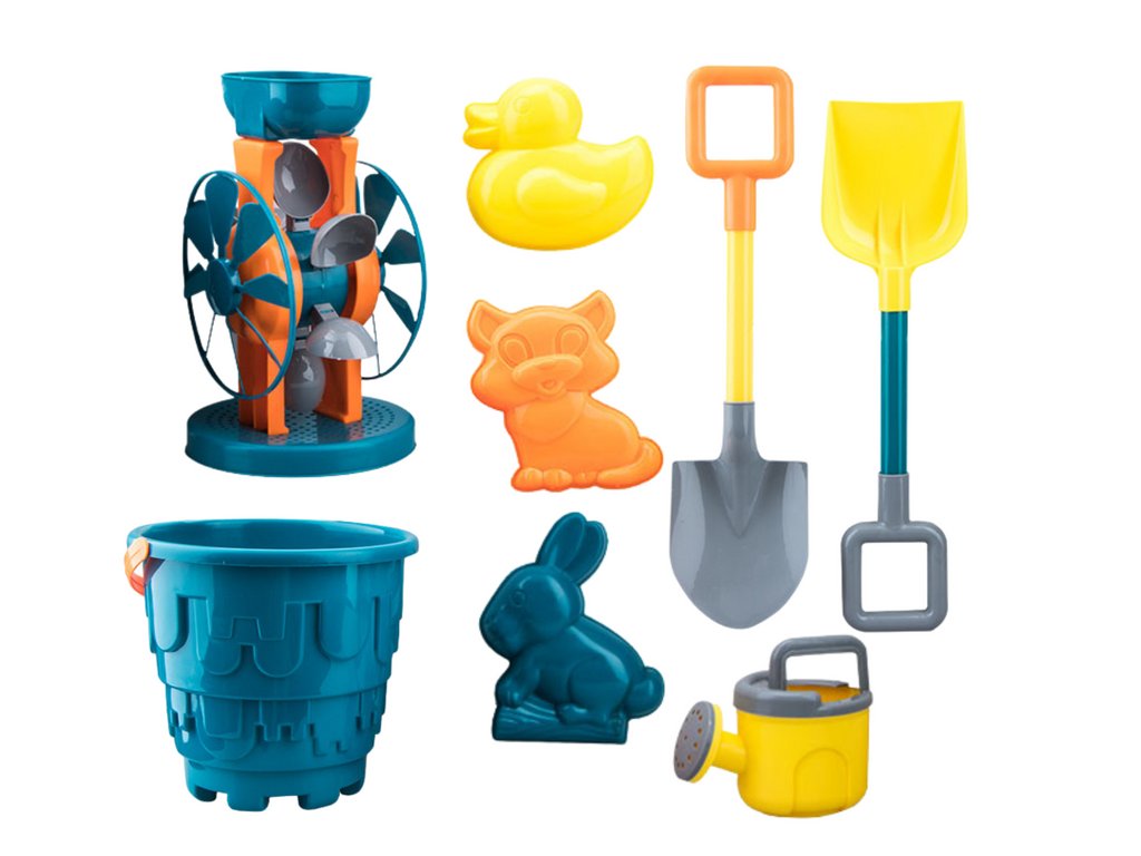 Set uključuje i mlin, koji dodaje interaktivnost igri. Djeca mogu prelijevati pijesak ili vodu i promatrati kako se mlin okreće.