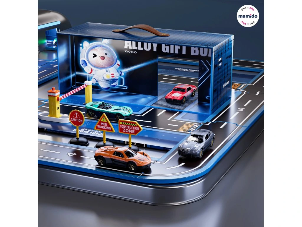 Stilski kolekcionarski kovčeg pun šarenih trkaćih autića za ljubitelje brzine. Otvorena kutija u obliku kovčega služi ne samo za pohranu automobila, već i kao igraća staza – idealna za kuću, putovanja, kao i originalan poklon.