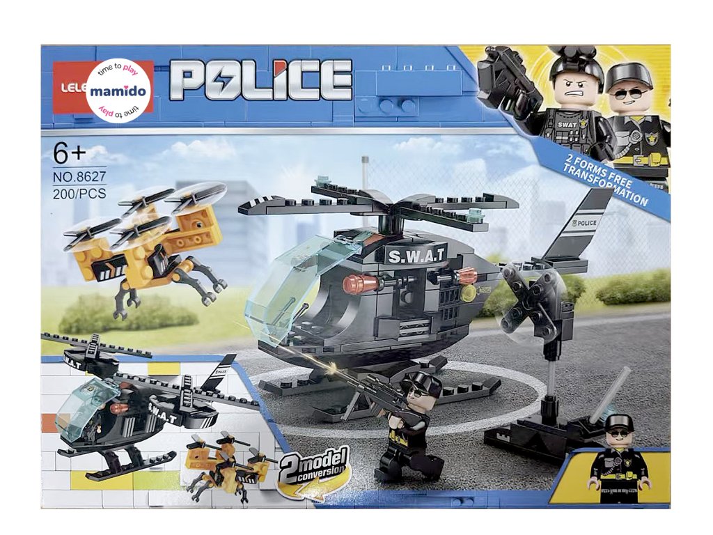 Set policijskog helikoptera izvrstan je set za svu djecu koja vole uzbuđenje, akciju i kreativne projekte. Set sadrži 200 dijelova, od kojih se mogu izgraditi dva različita modela – robusni policijski helikopter SWAT ili alternativni četverokrilni leteći stroj. Ova varijabilnost djeci donosi dvostruku porciju zabave i mogućnost ponovnog građenja.