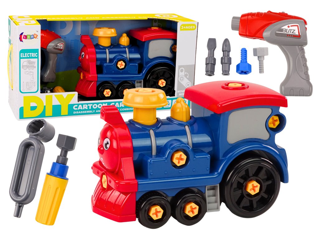 Kartoon lokomotiva za rastavljanje je izvanredna igračka koja djecu uvodi u fascinantan svijet mehanike. U plavo-crvenim bojama potiče male graditelje da istraže tajne ovog dojmljivog vozila. U kompletu dolazi set alata - bušilica, odvijač i tri zamjenjiva nastavka - koji omogućuju djeci da samostalno rastavljaju i sastavljaju vozilo.