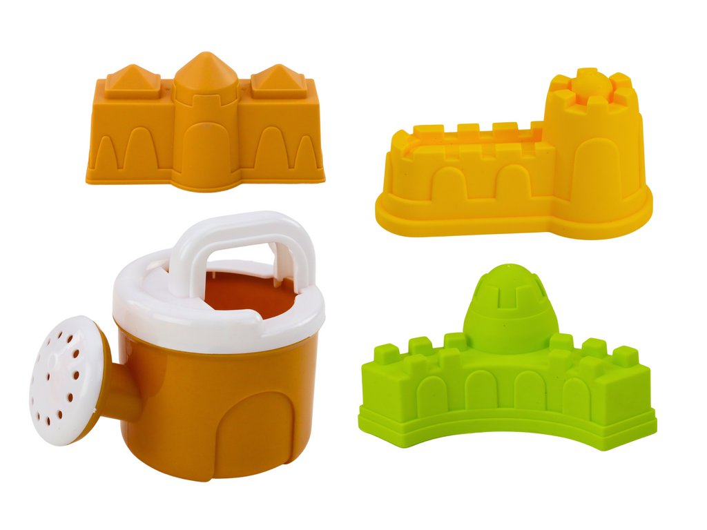 Osim mlinića, set uključuje i malu kanticu, koja je idealna za zalijevanje pješčanih građevina ili jednostavno za igru s vodom. Tri kalupa u obliku dvoraca omogućuju djeci stvaranje impresivnih pješčanih građevina, čime razvijaju njihovu maštu i manuelne vještine.