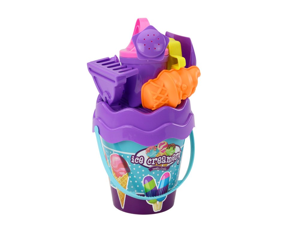 Set za pijesak u kantici sa sladoledima odličan je izbor za djecu koja obožavaju kreativnu igru na plaži i u pješčaniku. Centralni dio seta je ljubičasta kanta s motivom sladoleda.