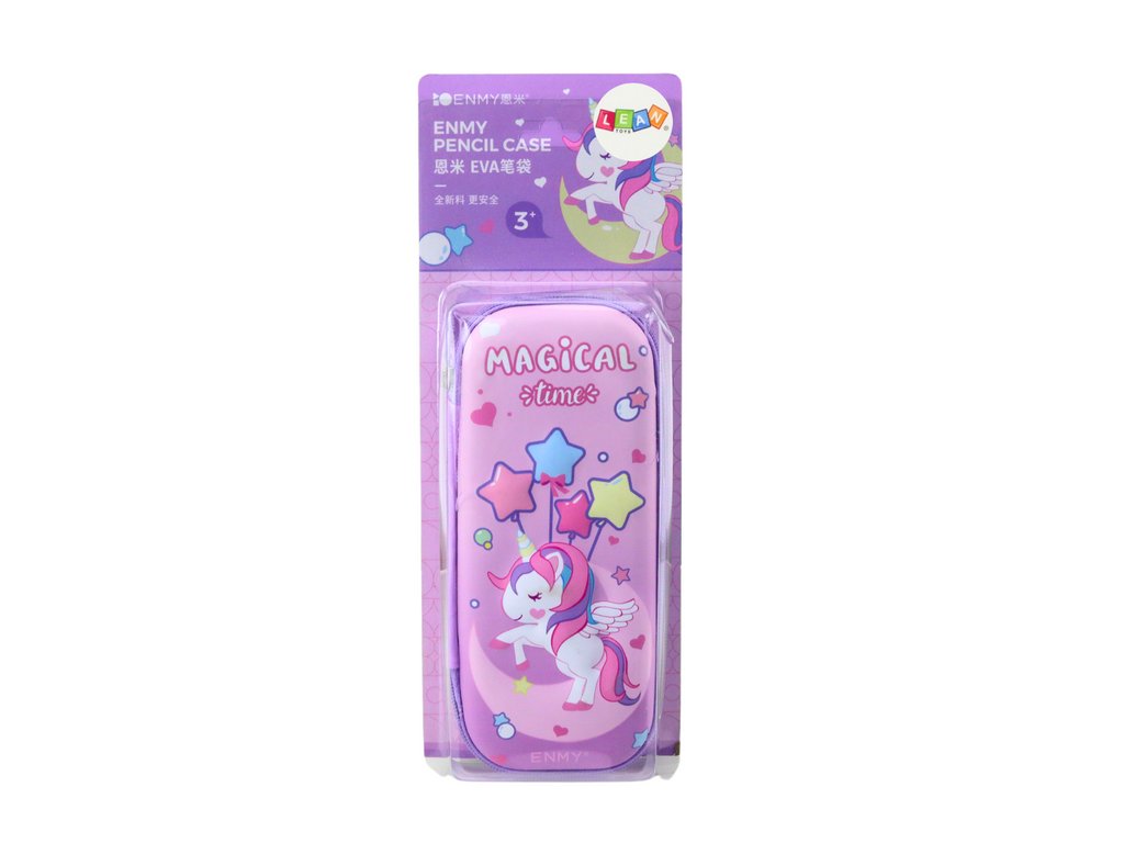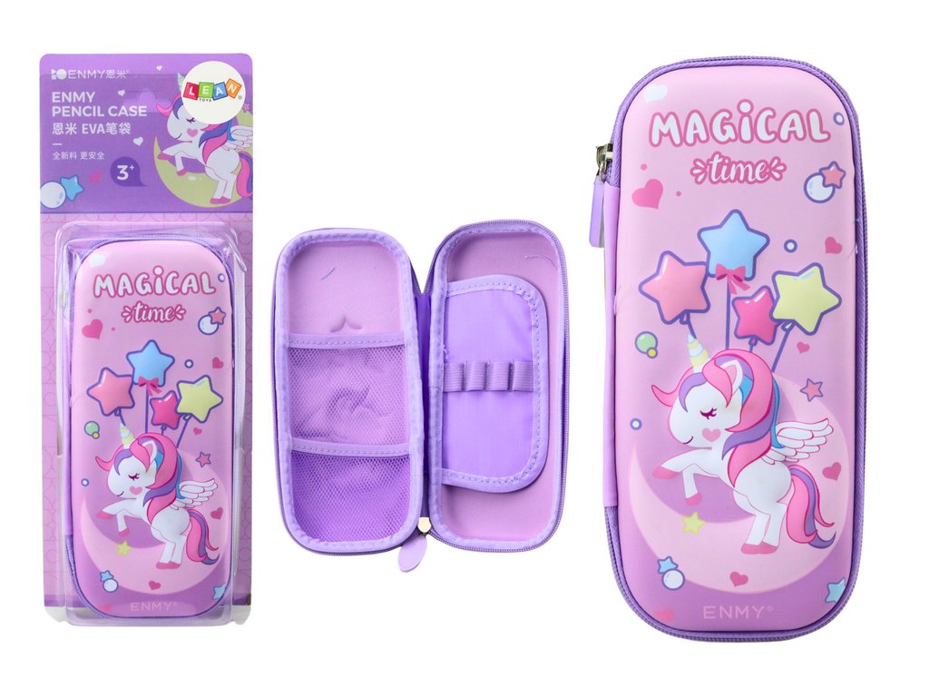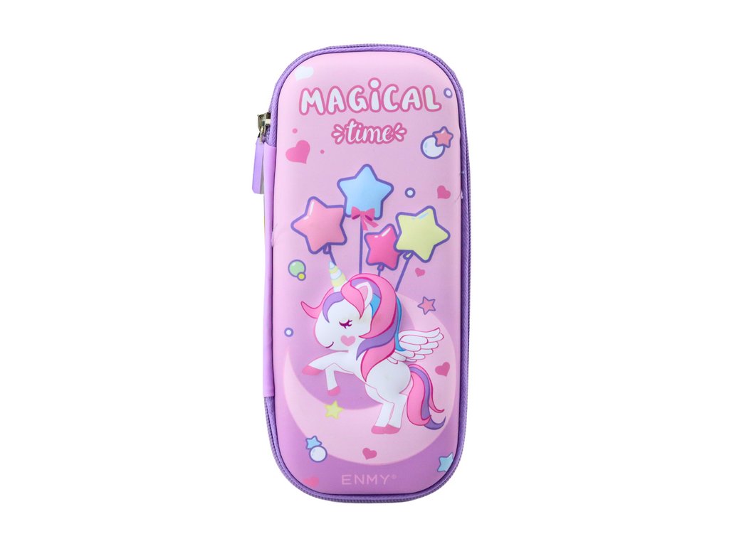 Školska sklopiva pernica s 3D jednorogom 23x10x5 cm ljubičasto roza
