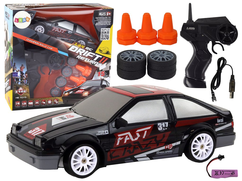 Sportski autić na daljinsko upravljanje R/C 1:24 s zamjenjivim kotačima crni