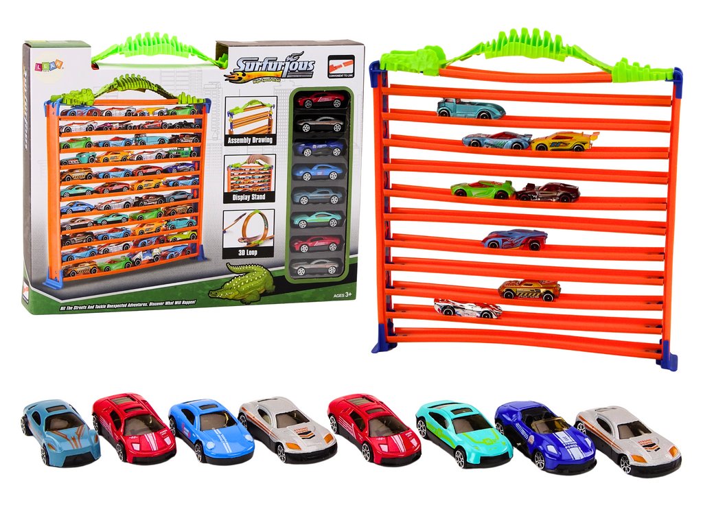 U setu je uključeno 8 raznovrsnih autića, koji pružaju mnogo zabave već pri otvaranju seta. Autići su različiti, što povećava privlačnost seta.