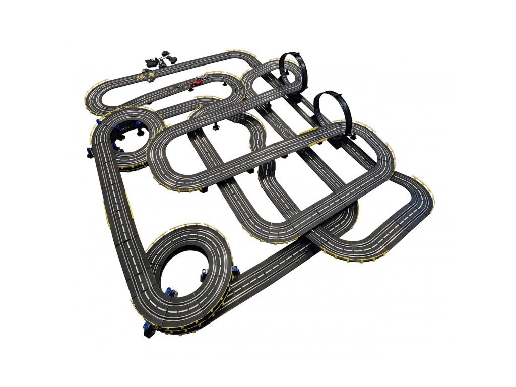 Velika staza za autiće ima oštre zavoje, ravne dijelove s dvije 360° petlje. Staza je duga 2 800 cm i napravljena je u omjeru 1:43. Set je opremljen s dva autića s gumiranim kotačima. Brzina i smjer autića mogu se kontrolirati pomoću daljinskog upravljača.