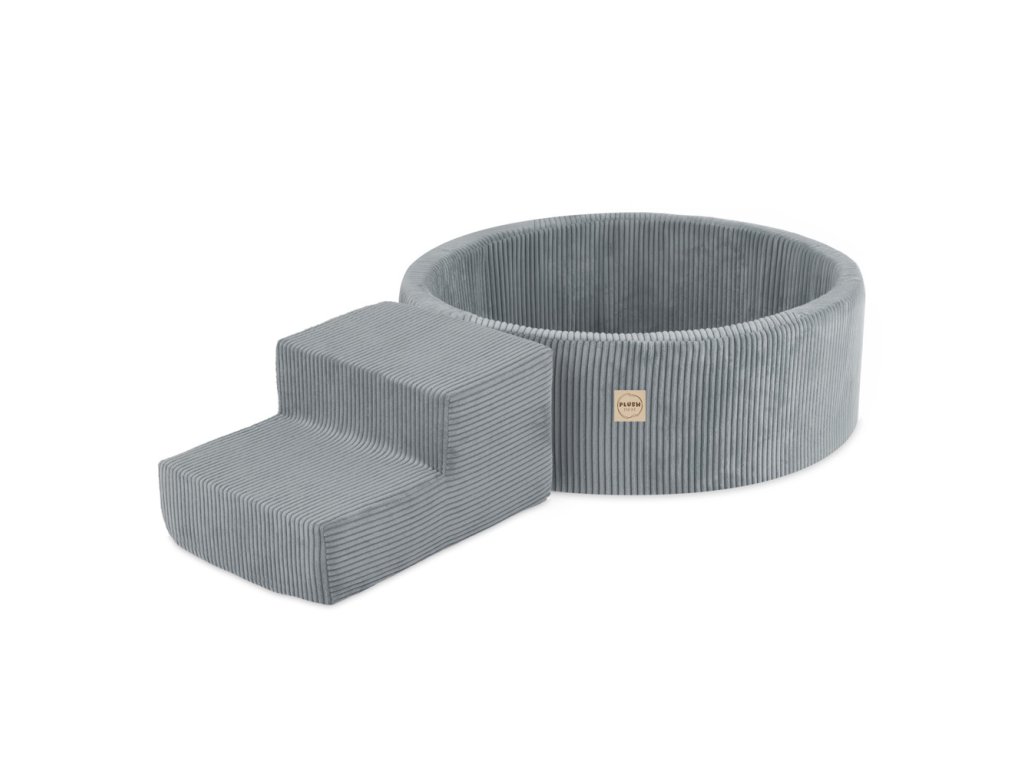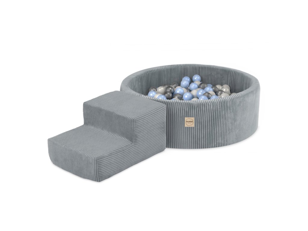 Suhi bazen okrugli Ø 90 × 30 cm s elementom za igru (stepenice) i 200 loptica sivi