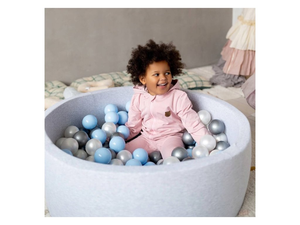 Unesite radost i otkrivanje u dječji svijet s našim suhim bazenom s lopticama! Idealan za malu djecu od 1,5 do 3 godine. Bazen je dizajniran s obzirom na sigurnost i izdržljivost, sadrži 200 mekanih, šarenih loptica koje jamče sate razigrane zabave i potiču motorički i senzorički razvoj djeteta. Univerzalna svijetlosiva nijansa i ugodan materijal na dodir čine ovaj bazen također lijepim i praktičnim poklonom.