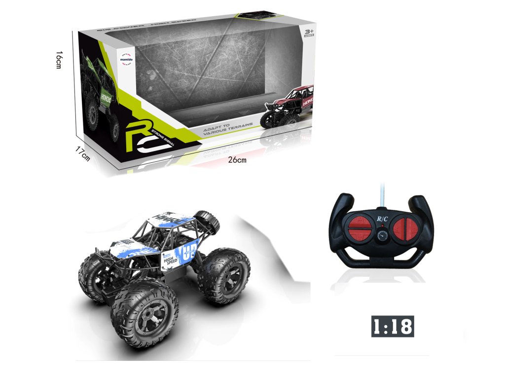 Snažan i izdržljiv terenski automobil u mjerilu 1:18 izvrstan je izbor za sve male trkače i entuzijaste kolekcionare. Zahvaljujući velikim gumenim kotačima i robusnoj konstrukciji, nosit će se s raznim površinama – od glatkog poda do terenske vožnje. Upravljanje je jednostavno pomoću daljinskog upravljača, koji omogućuje vožnju naprijed, natrag, lijevo i desno. Realističan dizajn i kvalitetna izrada jamče puno zabave i uzbudljivih vožnji. Igračka razvija motoričke sposobnosti, koordinaciju i donosi adrenalinsku zabavu kod kuće i vani.