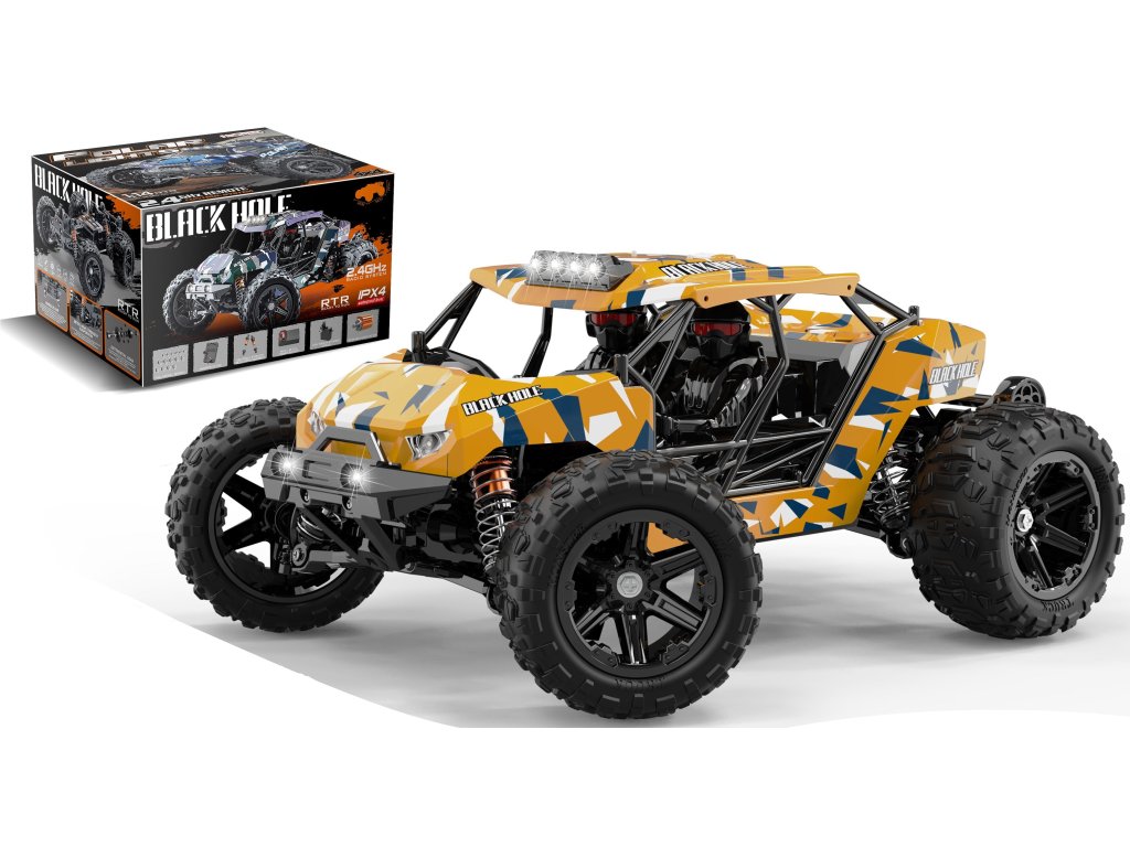 Model je opremljen neovisnim metalnim diferencijalom, podesivim amortizerima, metalnim pogonskim osovinama i vodootpornom elektronikom. Zahvaljujući 2.4 GHz sustavu, upravljanje je glatko i bez smetnji s dometom od nekoliko desetaka metara.