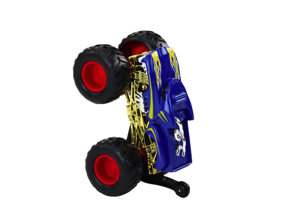 Ovo terensko vozilo odlikuje se čvrstom konstrukcijom koja osigurava trajnost i otpornost tijekom intenzivne igre. Njegova najkarakterističnija značajka su veliki gumeni kotači. Ove masivne, dobro profilirane gume jamče odličnu prianjanje i stabilnost na različitim površinama. Zahvaljujući njima vozilo može bez problema savladavati neravnine terena, pružajući glatku i sigurnu vožnju.