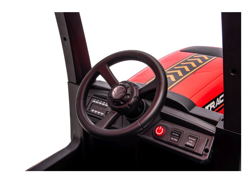 Električni traktor mora biti u svakoj dječjoj garaži. Vozilo je pokretano s dvije baterije kapaciteta 12V 10Ah. Maksimalno opterećenje vozila je 35 kg. Tijekom vožnje, dijete će zasigurno privući glazbeni panel s MP3 i USB.