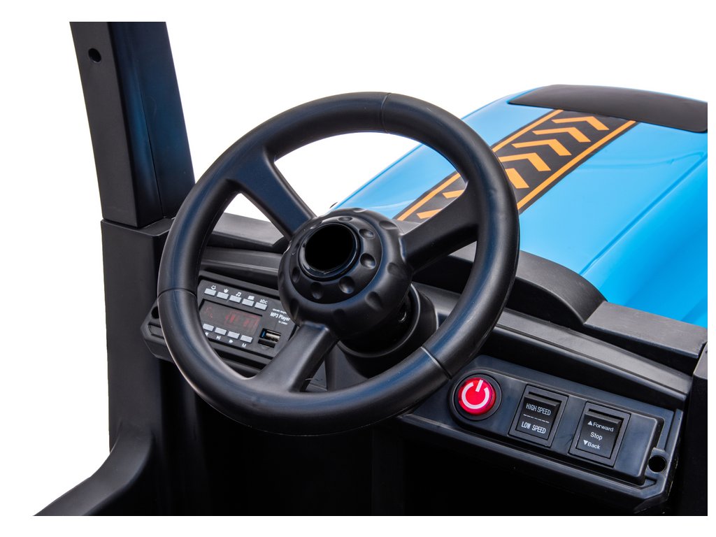 Električni traktor ne smije nedostajati u nijednoj dječjoj garaži. Vozilo je pokretano s dvije baterije kapaciteta 12V 10Ah. Maksimalno opterećenje vozila je 35 kg. Tijekom vožnje dijete će zasigurno oduševiti glazbeni panel s MP3 i USB.