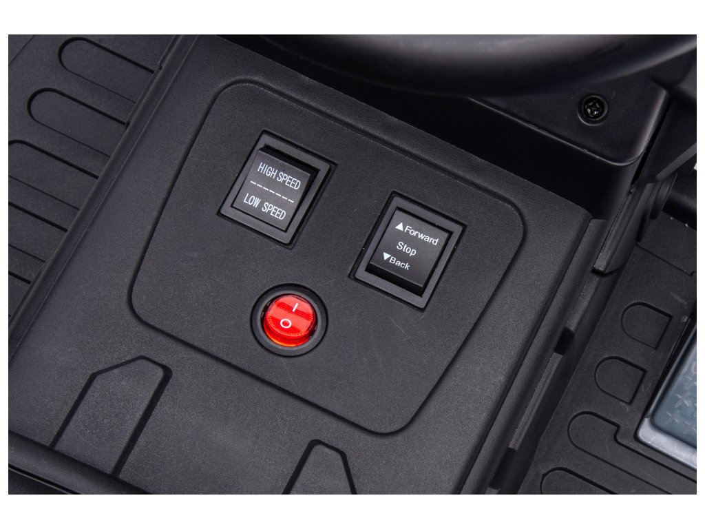 Traktor ima plastične kotače i sjedalo. Traktor automatski staje nakon otpuštanja papučice gasa. Traktor ima prekidač za brzinu, tako da omogućuje vožnju sporom ili brzom brzinom. Traktor postiže brzinu do 5 km/h.