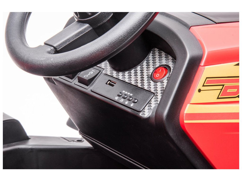 Daljinski upravljač 2,4GHz opremljen je tipkama za tri brzine i sigurnosnom tipkom Stop, koja trenutno zaustavlja vozilo i isključuje sve njegove funkcije.