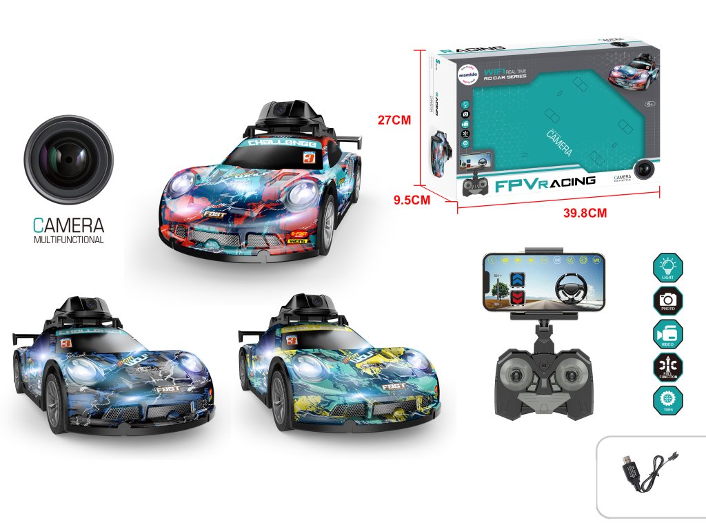 Ovo RC trkaće vozilo opremljeno je HD kamerom koja u stvarnom vremenu prenosi sliku na vaš mobilni telefon. Model ima sportski dizajn, LED svjetla i daljinski upravljač koji omogućuje potpunu kontrolu – vožnju naprijed, natrag i skretanje. Izvrstan izbor za djecu i odrasle koji vole moderne tehnologije i trkaće automobile.