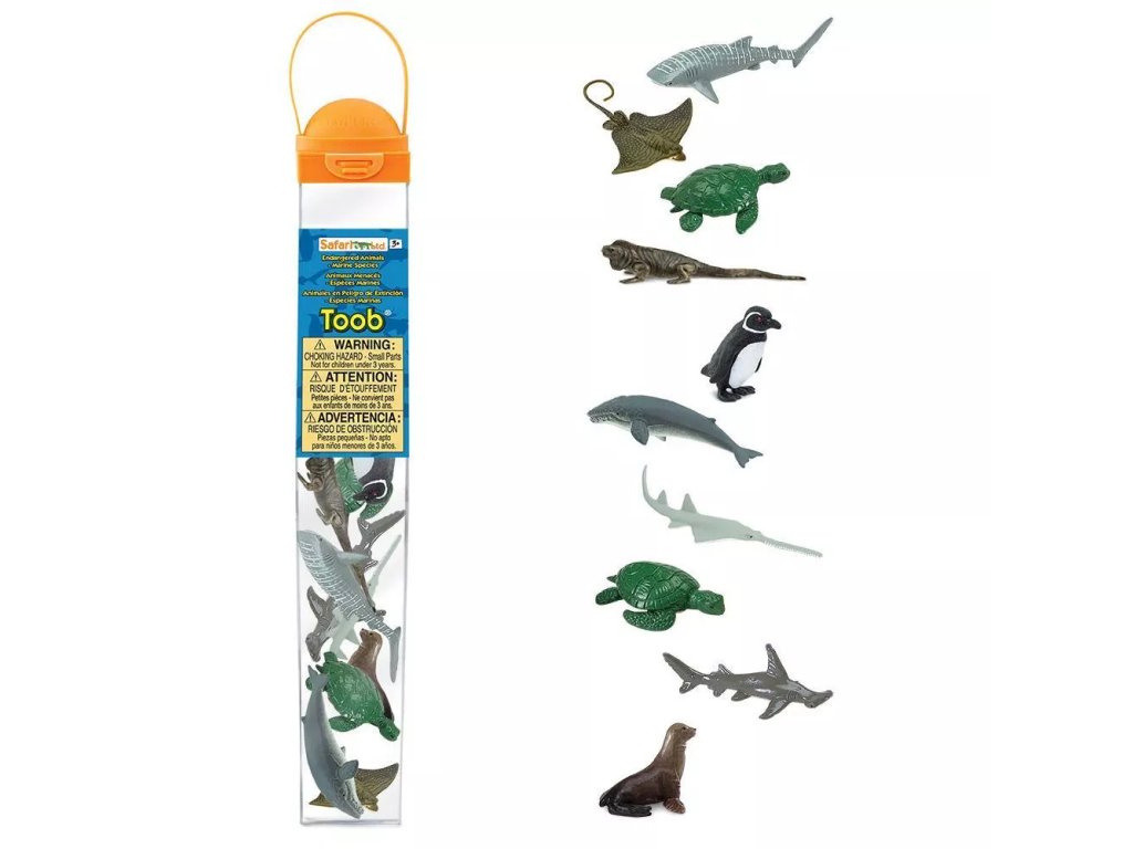 Tuba sadrži 10 detaljno dizajniranih i ručno oslikanih figura ugroženih vrsta životinja koje žive u morima i oceanima. Figure su pakirane u tubu za višekratnu upotrebu koja služi kao kutija za pohranu.