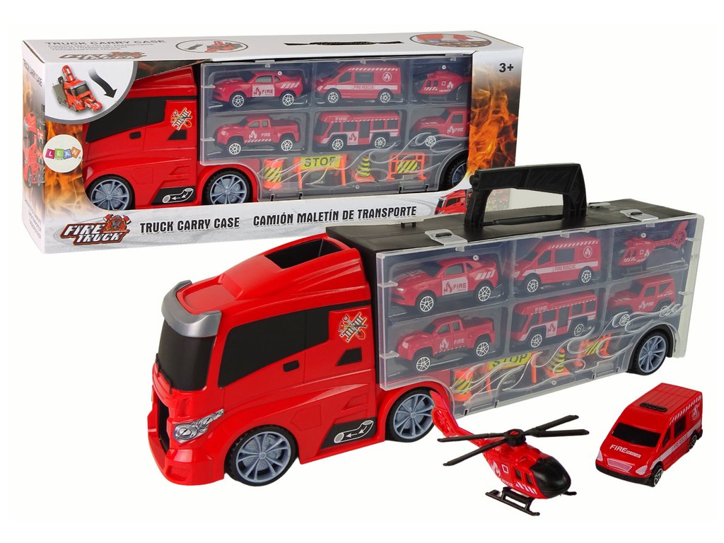Vatrogasni kamion s prostorom za pohranu je multifunkcionalno vozilo koje uključuje 6 vozila u svom prikolici. Kamion je opremljen praktičnom ručkom za jednostavno prenošenje kompleta s jednog mjesta na drugo.