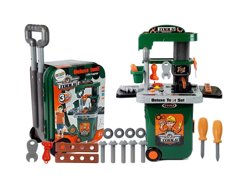 Veliki set alata u koferu je idealan izbor, sada ga dijete može ponijeti bilo gdje sa sobom. Po otvaranju kofera, svi elementi su uredno složeni unutra. Velika prednost ovog seta je njegovo bogato sadržaj.