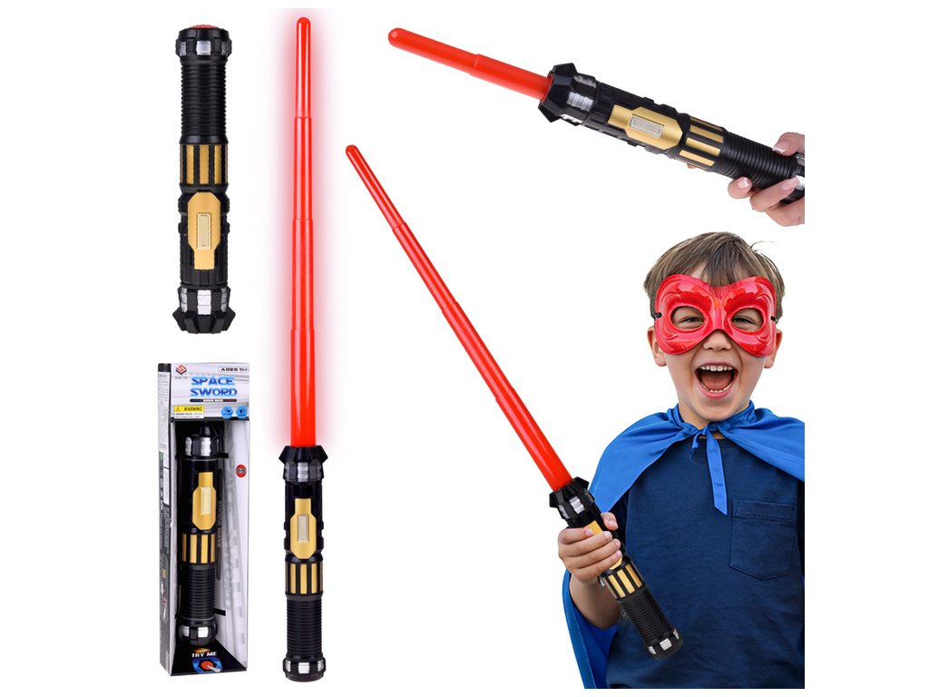 Osjetite snagu i postanite pravi borac zahvaljujući velikom sklopivom svjetlosnom maču sa zvučnim efektima! To je senzacionalna igračka koja će svakom malom obožavatelju galaktičkih avantura donijeti puno radosti i nezaboravne zabave. Idealan kao rekvizit za školski ples, ali i kao igračka za uzbudljive borbe u zvjezdanoj galaksiji.