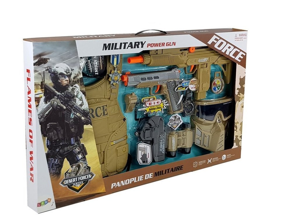 S ovim vojnim setom svaki će se mali dječak osjećati kao pravi vojnik. Vojni komplet je savršeno izrađen s naglaskom na najmanje detalje.