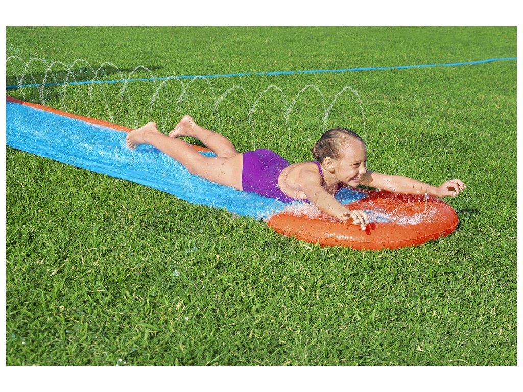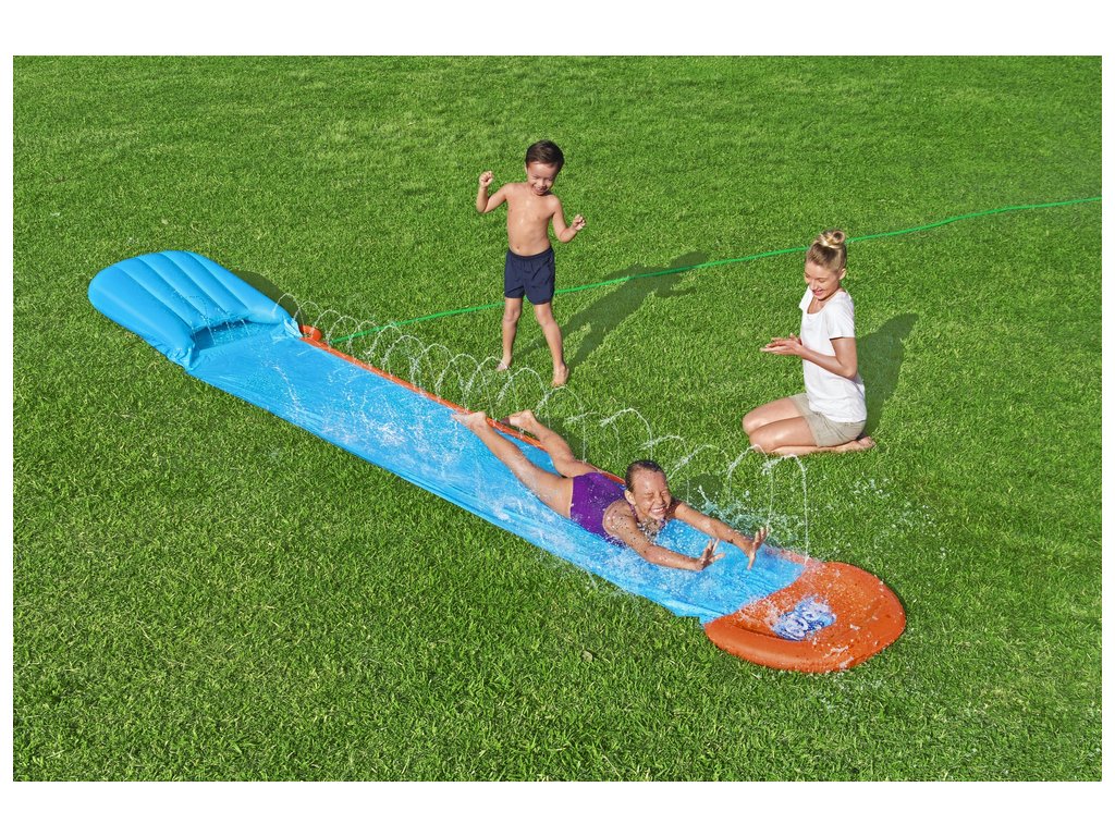 Vodeni tobogan 4,88 m od Bestway odlična je igračka za vruće ljetne dane. Dvostruki tobogan pruža klasičnu i bezvremensku zabavu u vrtu za svu djecu stariju od 3 godine. Bit će idealan oblik provođenja slobodnog vremena i zanimljive zabave.