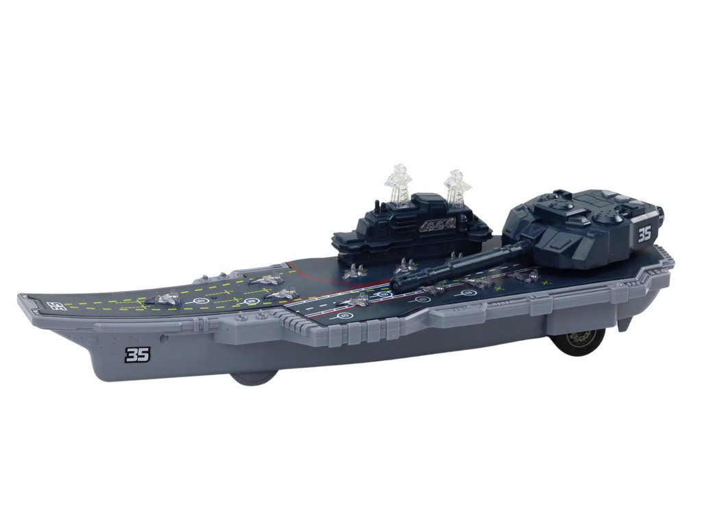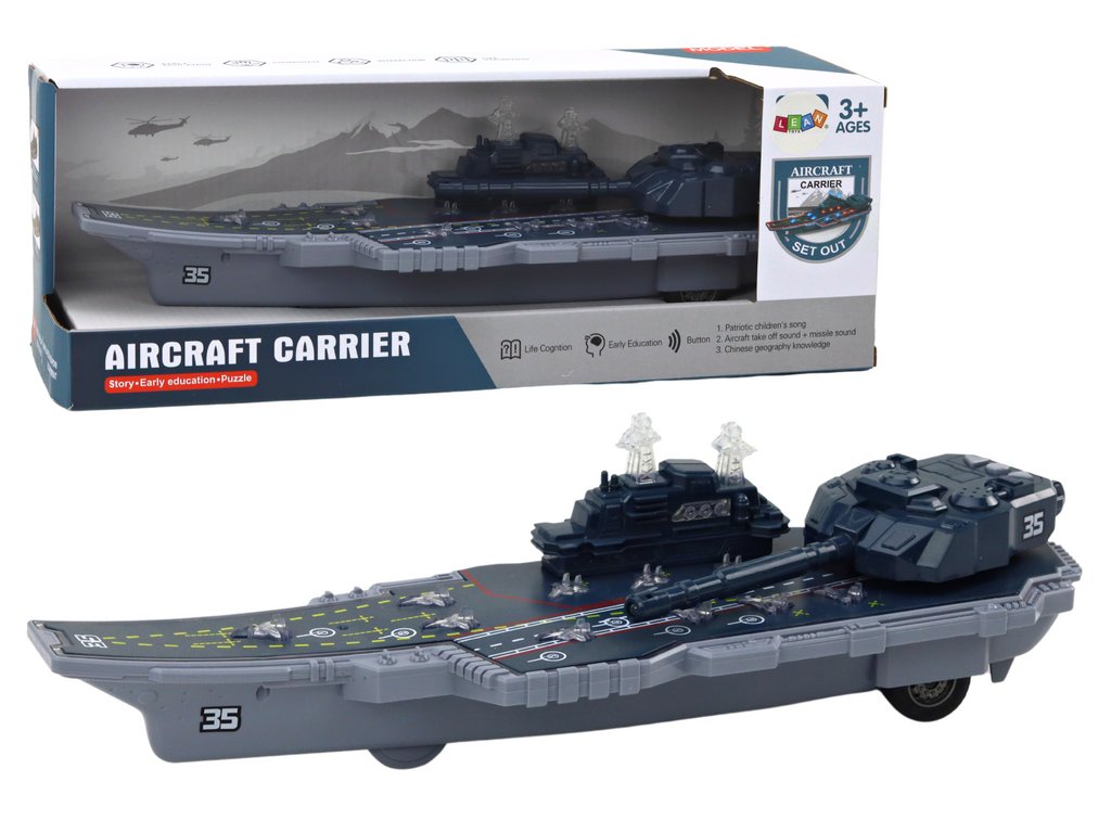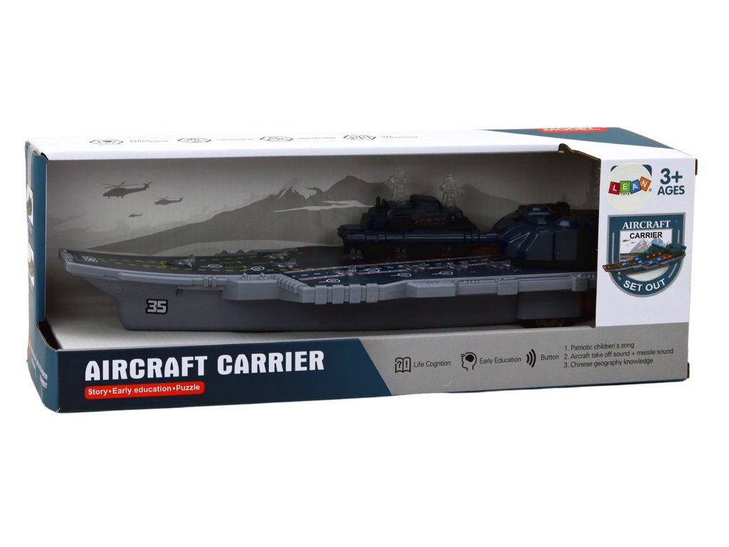 Nakon uključivanja melodija i zvukova, igračka također pokreće svjetlosne efekte, čineći igru još realističnijom i uzbudljivijom. Nosač aviona ima 4 kotača, što ga čini ne samo mjestom za igru, već i simulatorom koji potiče dječju maštu i razvija njihov interes za svijet zrakoplovstva i mornaričkog ratovanja. To je nezaboravna avantura za svakog malog pilota ili mornara koji želi osjetiti osjećaj pravog junaka na palubi nosača aviona.