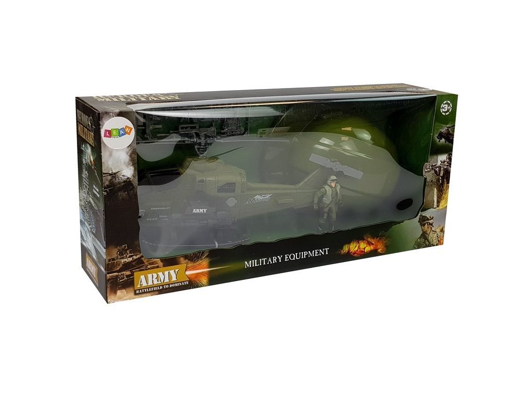 Helikopter ima rotore koji se ručno okreću za 360 stupnjeva. Djeluje na trzajni pogon. Figura vojnika ima pomične ruke, u kojima može držati razne plastične oružja koja su dio seta. Kaciga će malom ratniku omogućiti da se osjeća kao da je u pravoj bitci.