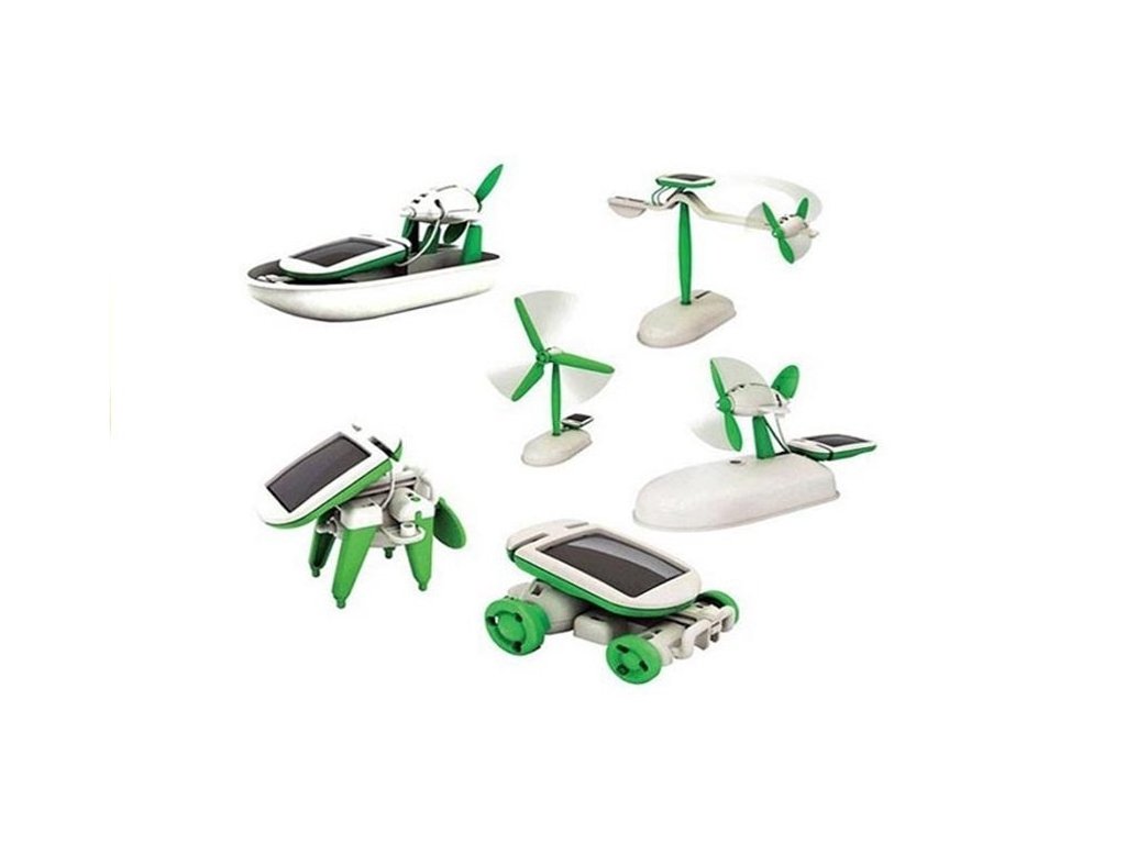 Kreativní sada Solar Robot 6 in 1Solar Robot je vzdělávací a interaktivní hračka, která baví a učí zároveň. Je to ideální nabídka pro malého ekologa a především pro všechny děti, které jsou zvědavé na svět. Sada 6 v 1 není jen zábavná při vašich stavebních zkouškách, je také poučná. Sada obsahuje: - konstrukční prvky, - elektronické součástky, - solární panel, - ilustrovaný manuál hračky. Prezentovaný robot je skvělým příkladem moudrého využití Slunce k pohonu malého motoru. Všechny prvky robota jsou vyrobeny s velkou péčí, díky čemuž hračka vypadá extrémně fenomenálně a solární energie z něj činí hračku šetrnou k životnímu prostředí. Když dítě sestavuje robota, postačí osvětlení z 50wattové halogenové žárovky, ale hračka se nejlépe ovládá venku za slunečných dnů. Vybavení hraček: - panel se stavebními prvky, - mechanické prvky, - solární panel, - návod k montáži obrázků. Čím tento solární robot vyniká? Skládá se z několika desítek prvků, což je nejen výzva pro malého konstruktéra, ale také umožňuje 6 různých možností montáže. Sestavení prvků hračky je velmi bezpečný úkol – nevyžaduje lepidlo ani baterie, protože je napájena sluneční energií. Věříme, že hra s prezentovanou kreativní sadou je skvělý způsob, jak se společně pobavit se svými blízkými, díky čemuž budou moci děti trávit více času se svými rodiči. Rozměry hračky: - solární vůz: 6,9 cm x 4,9 cm x 3,5 cm,- štěně slunečné: 6,6 cm x 6,5 cm x 4,6 cm,- solární loď: 12.2 cm x 7.6 cm x 6.2 cm,- solární letadlo: 15,1 cm x 8,9 cm x 6,2 cm,- solární ventilátor: 19.5 cm x 14.9 cm x 13.6 cm,- solární rotační letadlo: 21,7 cm x 16,4 cm x 10,9 cm. Dimenze: 21 cm x 18 cm x 5 cmDoplňkové parametry